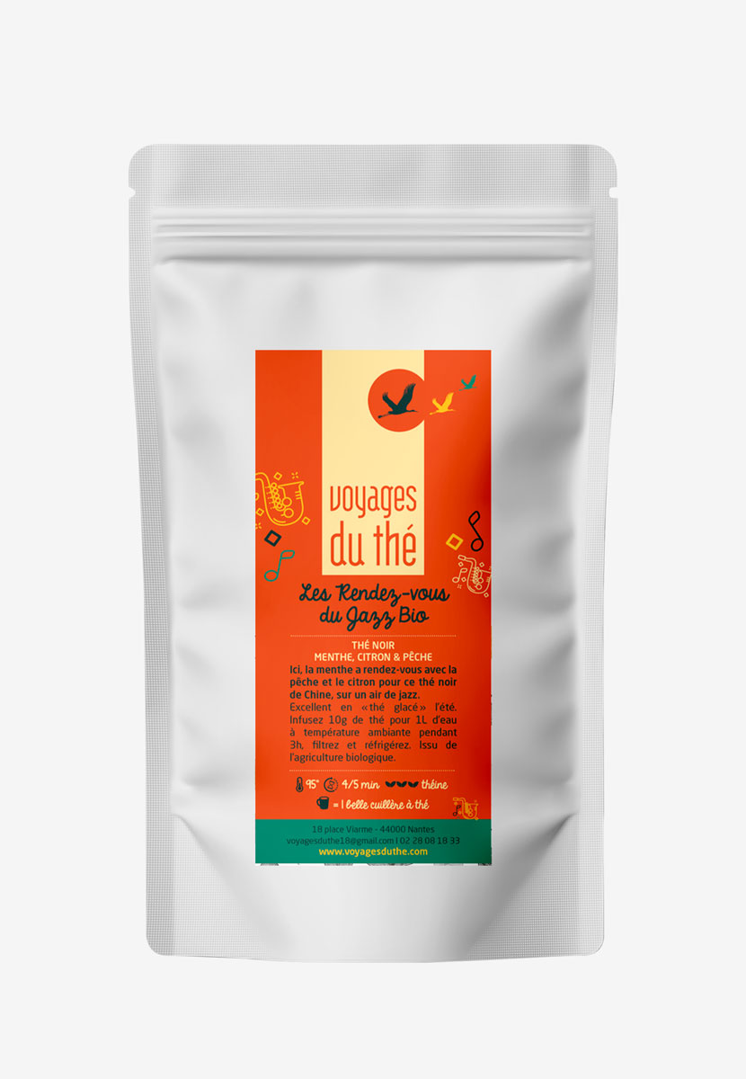 Ici, la menthe a rendez-vous avec la pêche et le citron pour ce thé noir de Chine, sur un air de jazz. Excellent en thé « glacé » l’été. Infusez 10g de thé pour 1L d’eau à température ambiante pendant 3h, puis filtrez, réfrigérez et dégustez !