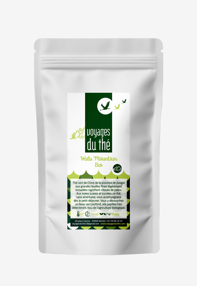 Thé vert de Chine de la province de Jiangxi aux grandes feuilles fines légèrement torsadées signifiant « Rosée de Jade ». Aux notes suaves et sucrées, ce thé, sans amertume, vous accompagnera dès le petit-déjeuner. Vous y découvrirez un beau vert profond, vos papilles s’en délecteront.